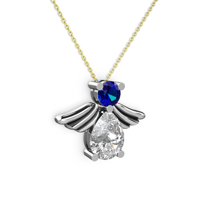 Beyaz zirkon ve lab safir 8 ayar beyaz altın kolye (40 cm altın rolo zincir)