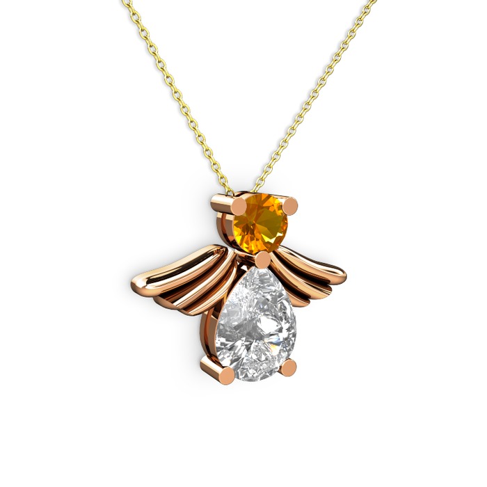 Beyaz zirkon ve sitrin 925 ayar rose altın kaplama gümüş kolye (40 cm altın rolo zincir)