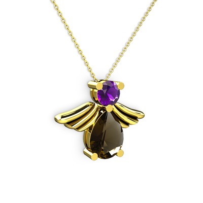 Dumanlı kuvars ve ametist 14 ayar altın kolye (40 cm altın rolo zincir)