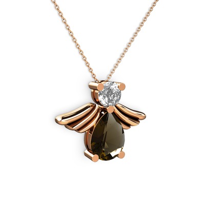 Dumanlı kuvars ve beyaz zirkon 18 ayar rose altın kolye (40 cm rose altın rolo zincir)