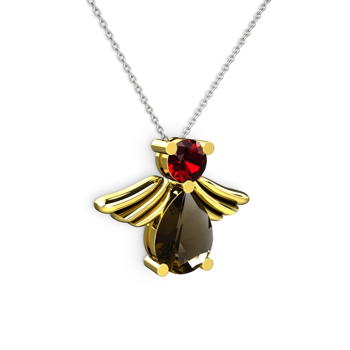 Dumanlı kuvars ve garnet 14 ayar altın kolye (40 cm beyaz altın rolo zincir)