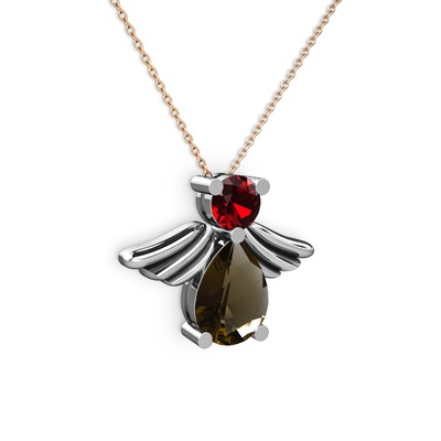 Dumanlı kuvars ve garnet 925 ayar gümüş kolye (40 cm rose altın rolo zincir)