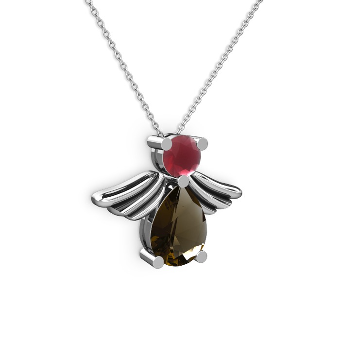 Dumanlı kuvars ve kök yakut 925 ayar gümüş kolye (40 cm beyaz altın rolo zincir)