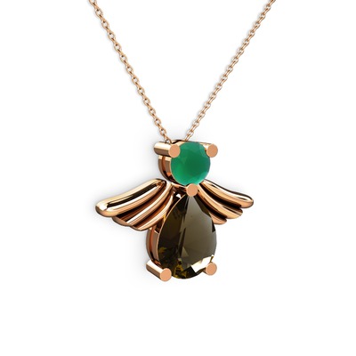 Dumanlı kuvars ve kök zümrüt 14 ayar rose altın kolye (40 cm rose altın rolo zincir)