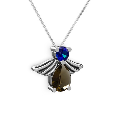 Dumanlı kuvars ve lab safir 14 ayar beyaz altın kolye (40 cm beyaz altın rolo zincir)