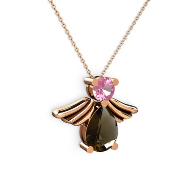Dumanlı kuvars ve pembe kuvars 18 ayar rose altın kolye (40 cm gümüş rolo zincir)