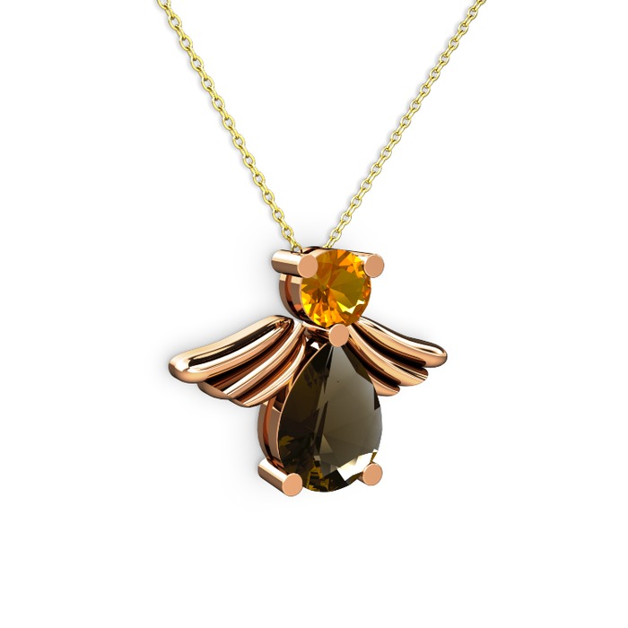 Dumanlı kuvars ve sitrin 14 ayar rose altın kolye (40 cm altın rolo zincir)