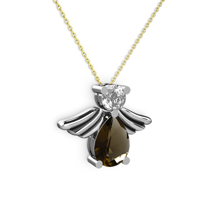 Dumanlı kuvars ve swarovski 925 ayar gümüş kolye (40 cm altın rolo zincir)