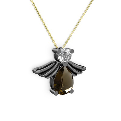 Dumanlı kuvars ve swarovski 925 ayar siyah rodyum kaplama gümüş kolye (40 cm gümüş rolo zincir)