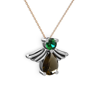 Dumanlı kuvars ve yeşil kuvars 14 ayar beyaz altın kolye (40 cm rose altın rolo zincir)