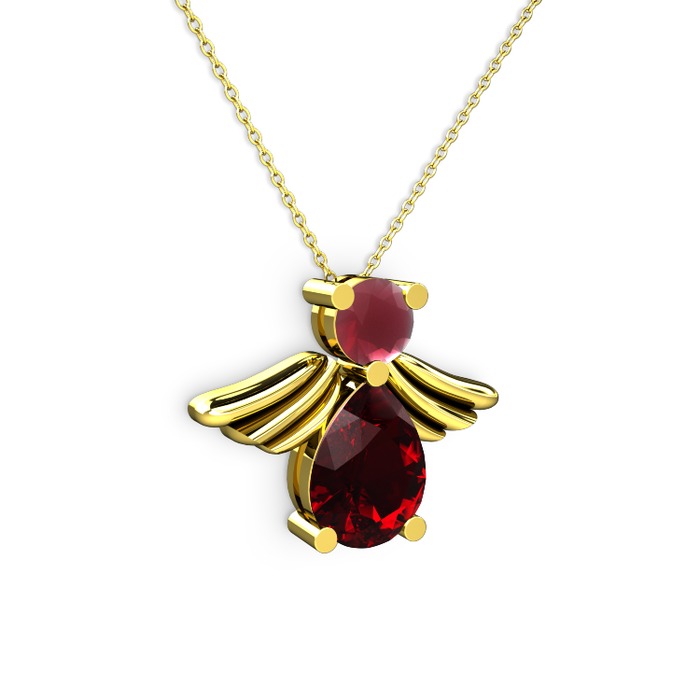 Garnet ve kök yakut 14 ayar altın kolye (40 cm altın rolo zincir)
