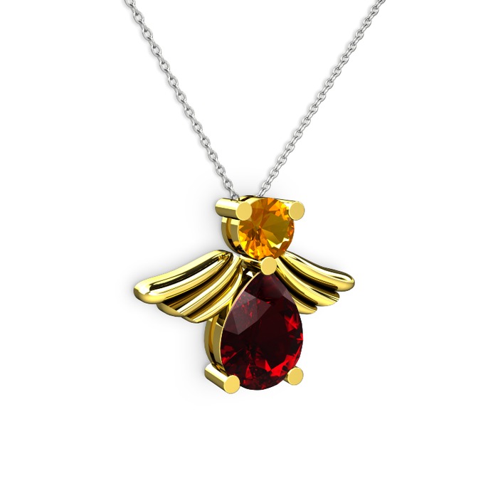 Garnet ve sitrin 14 ayar altın kolye (40 cm beyaz altın rolo zincir)