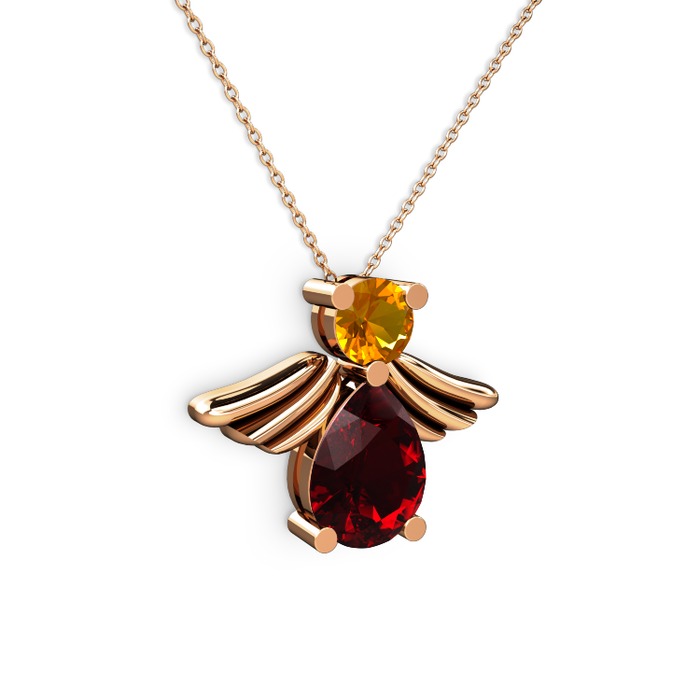 Garnet ve sitrin 925 ayar rose altın kaplama gümüş kolye (40 cm rose altın rolo zincir)
