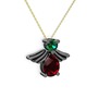 Garnet ve yeşil kuvars 925 ayar siyah rodyum kaplama gümüş kolye (40 cm altın rolo zincir)