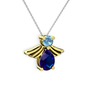 Lab safir ve akuamarin 14 ayar altın kolye (40 cm gümüş rolo zincir)