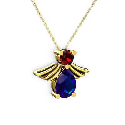 Lab safir ve garnet 18 ayar altın kolye (40 cm altın rolo zincir)