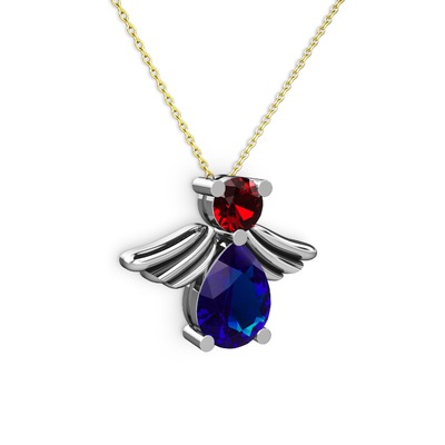 Lab safir ve garnet 8 ayar beyaz altın kolye (40 cm gümüş rolo zincir)