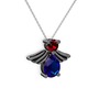 Lab safir ve garnet 925 ayar siyah rodyum kaplama gümüş kolye (40 cm beyaz altın rolo zincir)