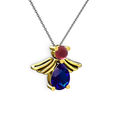 Lab safir ve kök yakut 18 ayar altın kolye (40 cm gümüş rolo zincir)
