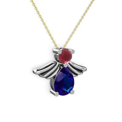 Lab safir ve kök yakut 925 ayar gümüş kolye (40 cm altın rolo zincir)