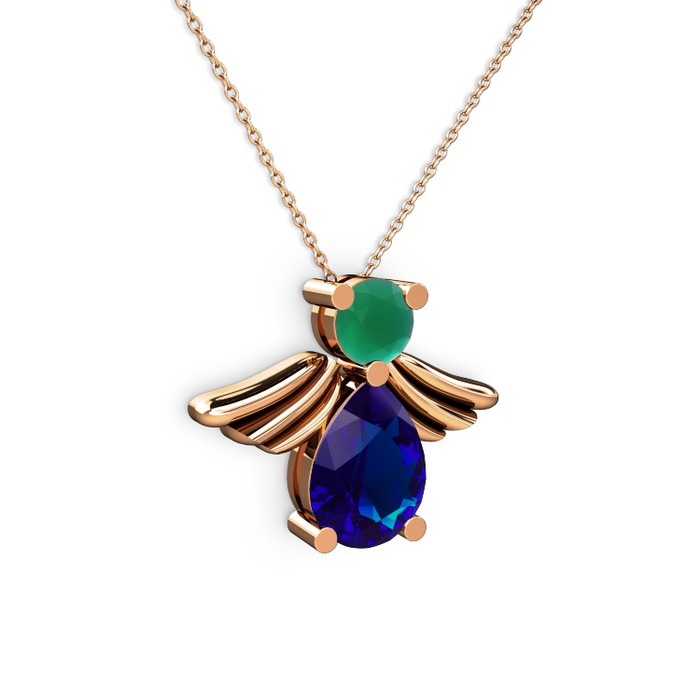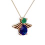 Lab safir ve kök zümrüt 14 ayar rose altın kolye (40 cm rose altın rolo zincir)