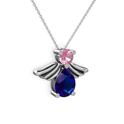 Lab safir ve pembe kuvars 8 ayar beyaz altın kolye (40 cm beyaz altın rolo zincir)