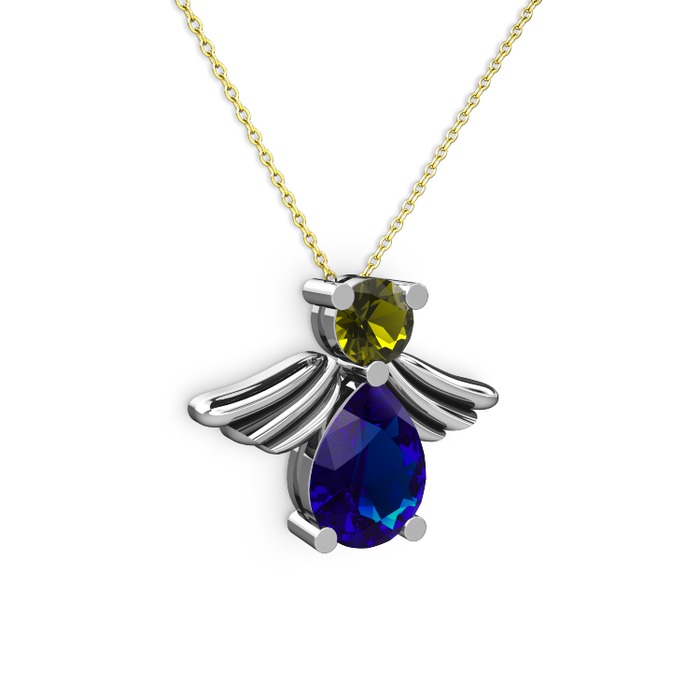 Lab safir ve peridot 8 ayar beyaz altın kolye (40 cm altın rolo zincir)