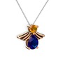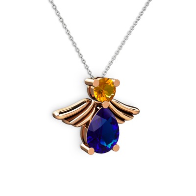 Lab safir ve sitrin 18 ayar rose altın kolye (40 cm beyaz altın rolo zincir)