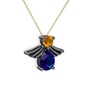 Lab safir ve sitrin 925 ayar siyah rodyum kaplama gümüş kolye (40 cm altın rolo zincir)