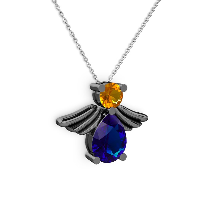 Lab safir ve sitrin 925 ayar siyah rodyum kaplama gümüş kolye (40 cm gümüş rolo zincir)