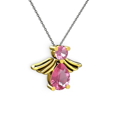 Pembe kuvars 18 ayar altın kolye (40 cm gümüş rolo zincir)