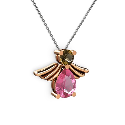 Pembe kuvars ve dumanlı kuvars 18 ayar rose altın kolye (40 cm gümüş rolo zincir)