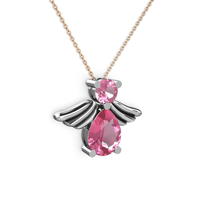 Pembe kuvars 925 ayar gümüş kolye (40 cm rose altın rolo zincir)