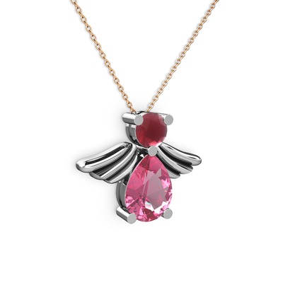 Pembe kuvars ve kök yakut 925 ayar gümüş kolye (40 cm rose altın rolo zincir)