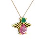 Pembe kuvars ve kök zümrüt 8 ayar altın kolye (40 cm rose altın rolo zincir)