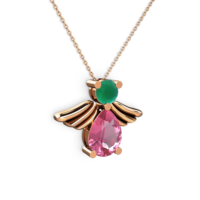 Pembe kuvars ve kök zümrüt 8 ayar rose altın kolye (40 cm rose altın rolo zincir)