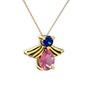Pembe kuvars ve lab safir 8 ayar altın kolye (40 cm rose altın rolo zincir)