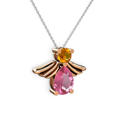 Pembe kuvars ve sitrin 14 ayar rose altın kolye (40 cm beyaz altın rolo zincir)