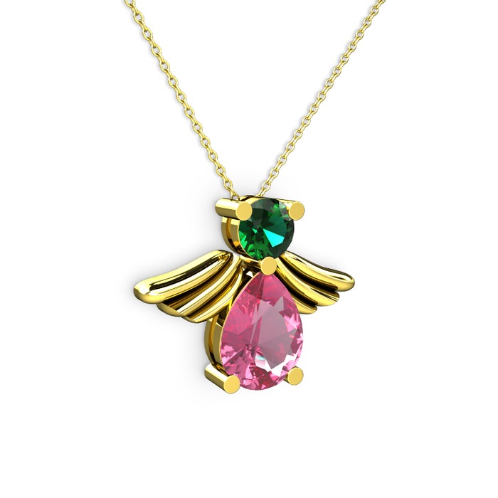 Pembe kuvars ve yeşil kuvars 8 ayar altın kolye (40 cm altın rolo zincir)