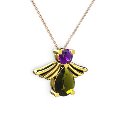 Peridot ve ametist 8 ayar altın kolye (40 cm rose altın rolo zincir)