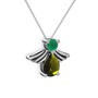 Peridot ve kök zümrüt 18 ayar beyaz altın kolye (40 cm beyaz altın rolo zincir)