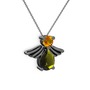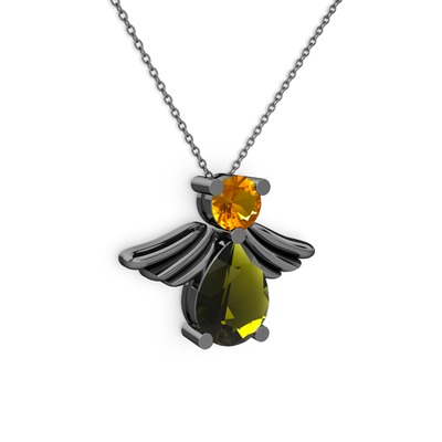 Peridot ve sitrin 925 ayar siyah rodyum kaplama gümüş kolye (40 cm gümüş rolo zincir)