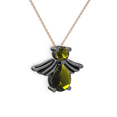 Peridot 925 ayar siyah rodyum kaplama gümüş kolye (40 cm rose altın rolo zincir)