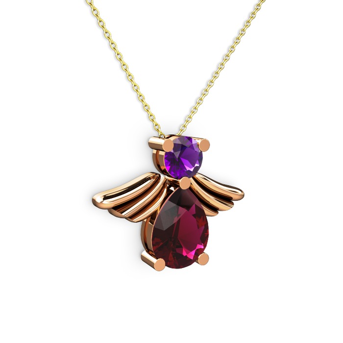 Rodolit garnet ve ametist 18 ayar rose altın kolye (40 cm altın rolo zincir)