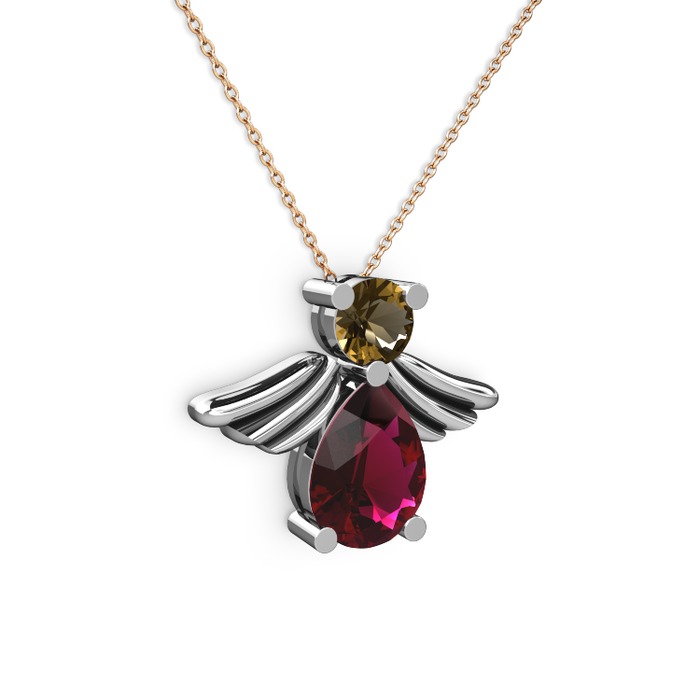 Rodolit garnet ve dumanlı kuvars 18 ayar beyaz altın kolye (40 cm rose altın rolo zincir)