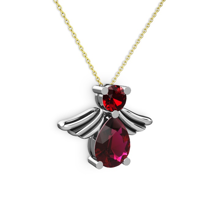 Rodolit garnet ve garnet 14 ayar beyaz altın kolye (40 cm altın rolo zincir)