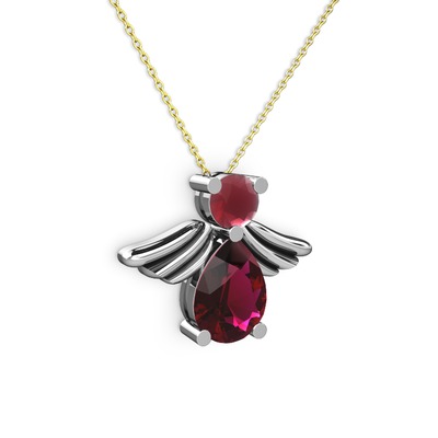Rodolit garnet ve kök yakut 8 ayar beyaz altın kolye (40 cm altın rolo zincir)