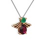 Rodolit garnet ve kök zümrüt 925 ayar rose altın kaplama gümüş kolye (40 cm gümüş rolo zincir)