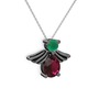 Rodolit garnet ve kök zümrüt 925 ayar siyah rodyum kaplama gümüş kolye (40 cm beyaz altın rolo zincir)