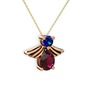 Rodolit garnet ve lab safir 18 ayar rose altın kolye (40 cm gümüş rolo zincir)